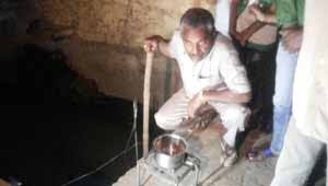 | नाले की गैस से स्टोव जलाता हुआ |