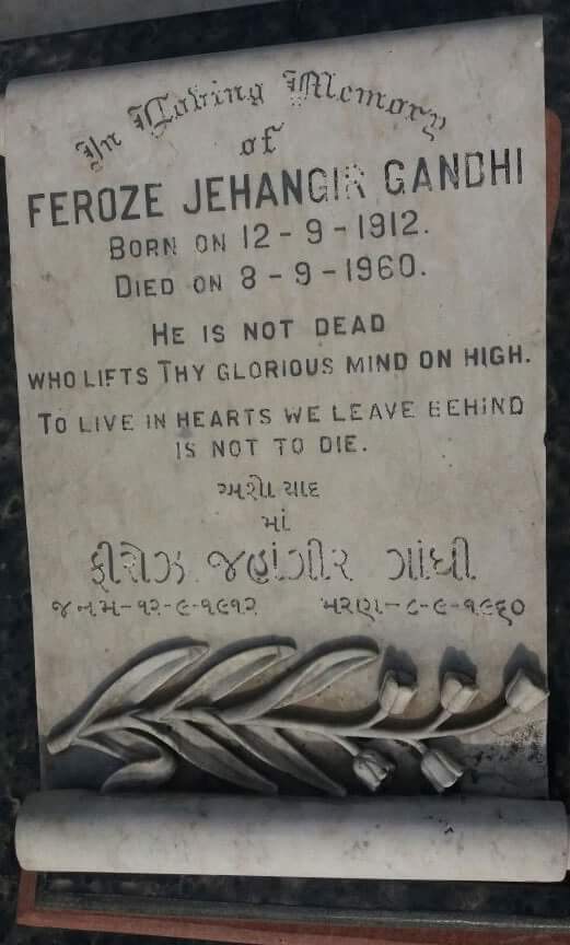 | प्रयागराज स्थित फिरोज़ गांधी का कब्र! ध्यान रहे कि पारसियों का कब्र नही होता है। |