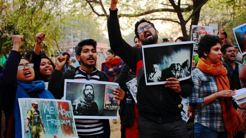 | अतंकवादी गुरु अफजल के बरसी पर प्रदर्शन करते JNU के छात्र |