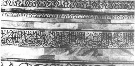 अमानत खाँ शीराजी नामक व्यक्ति ने कुरान लिखने का कार्य किया था। उसने कई स्थानों पर अपना नाम तथा तारीख लिखी है। अन्तिम तारीख १६३९ ई. की है, यही कारण है कि सन् १६३७ ई. के बाद संगमरमर की मांग नहीं की गई थी।